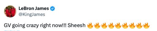 詹姆斯更新社交媒体感叹道:“文森特现在也太疯狂了吧!!!”